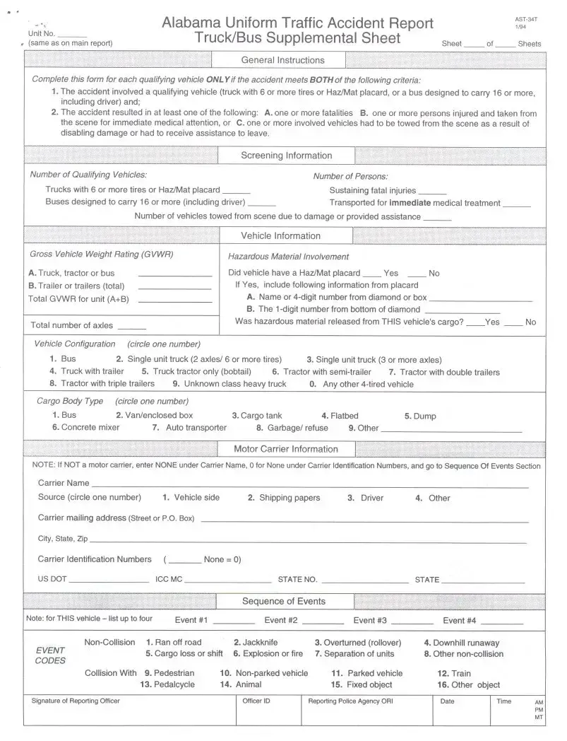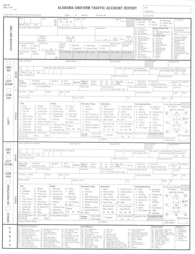 Completing the Alabama Uniform Traffic Report form accurately is essential for documenting traffic incidents. However, individuals often make several common mistakes that can lead to complications. One frequent error is failing to provide the correct date. The form requires precise information regarding the month, day, and year of the incident. Omitting or miswriting this information can create confusion and delay in processing the report.