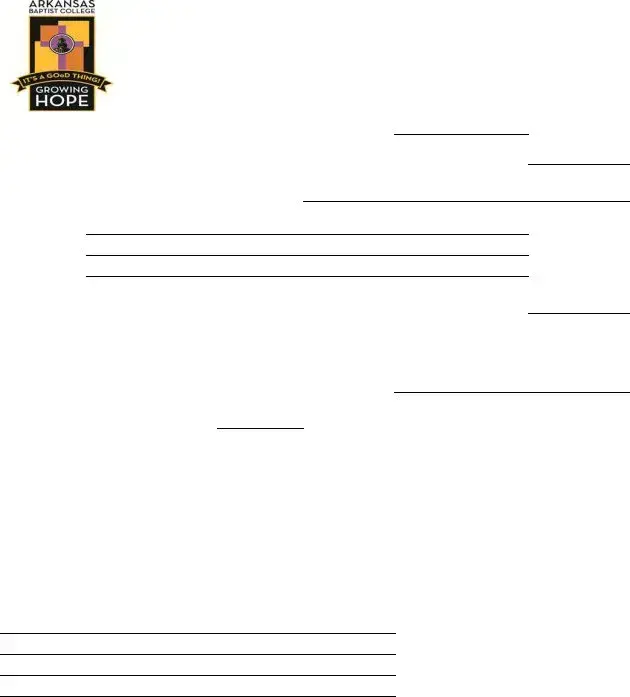 When it comes to obtaining academic records, the Arkansas Baptist Transcript form serves as a crucial tool for students and alumni alike. This form is designed to facilitate the request for official transcripts, which are essential for various purposes, such as transferring to another institution, applying for jobs, or furthering education. Located at 1621 Martin Luther King Drive in Little Rock, Arkansas, the college provides a straightforward process for requesting transcripts. Students must provide essential information, including their name, student ID or last digits of their Social Security number, and any previous names used during their time at the institution. Additionally, the form requires the current address and contact numbers to ensure smooth communication. It's important to note whether the student is currently enrolled, as this can impact the processing of the request. The form also includes options for how the transcripts should be delivered, whether by mail, fax, or in person, along with any specific instructions regarding holding for grades or changes. Importantly, students must sign the form, as transcripts cannot be released without their authorization or if there are outstanding financial obligations. With a processing fee and a typical turnaround time of up to seven business days, understanding the Arkansas Baptist Transcript form is essential for anyone looking to navigate their academic journey effectively.