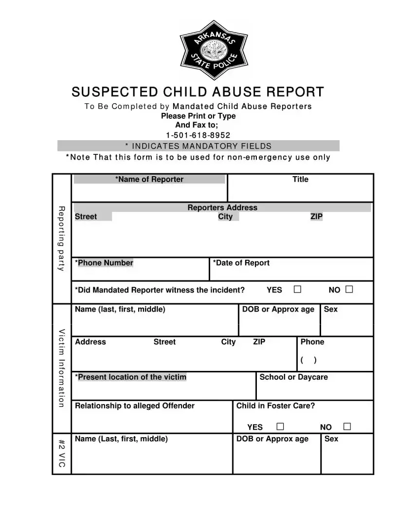 Filling out the Arkansas Child Abuse form can be a daunting task, especially when the stakes are high. Unfortunately, many people make common mistakes that can hinder the reporting process. One frequent error is failing to complete all mandatory fields. The form clearly indicates which fields are required, but some individuals overlook these essential sections. Missing information can lead to delays in processing the report.