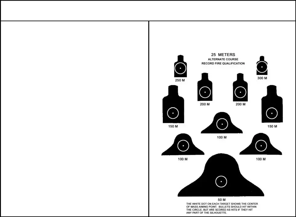 This scorecard is used to score alternate course record fire qualification when the 25-meter scaled silhouette target (NSN 6920-01-167-1398) is used. The alternate course is used only