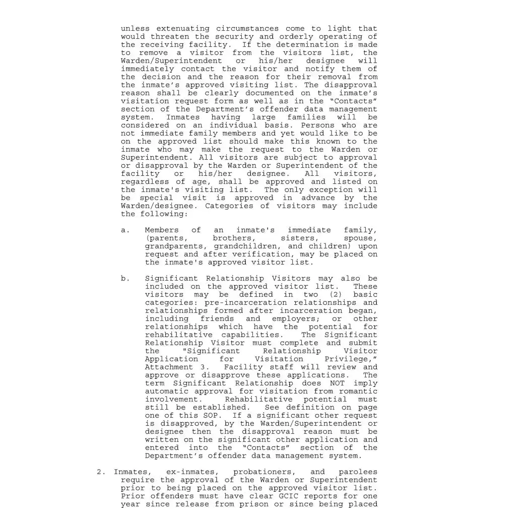 Another mistake is failing to follow the specific guidelines for visitor eligibility. Some individuals may mistakenly include friends or extended family members who do not meet the criteria. It is crucial to understand the definitions of immediate family and significant relationship visitors as outlined in the SOP.