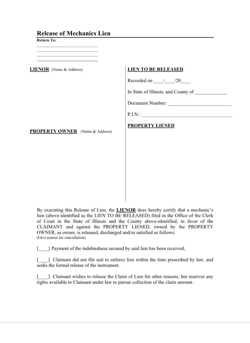 Filling out the Illinois Notice Lien form can be a straightforward process, but mistakes can easily occur. One common error is failing to provide complete and accurate information about the property owner. It is essential to include the full name and address of the property owner. Incomplete details can lead to delays or even the rejection of the lien.