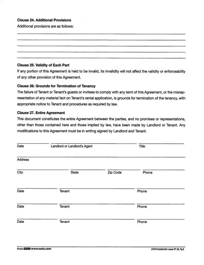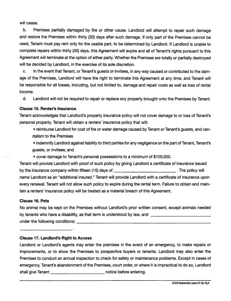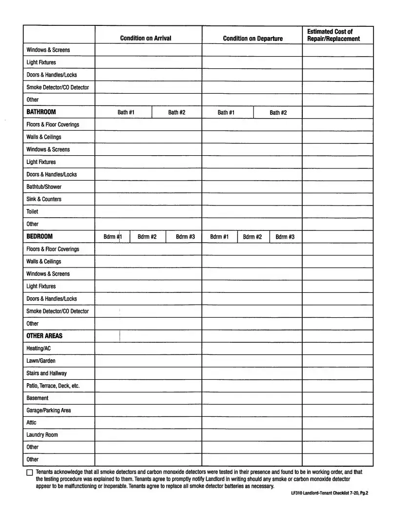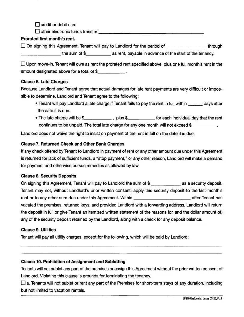 Filling out the LF310 Residential Lease form requires attention to detail. One common mistake is failing to clearly identify both the landlord and tenant in Clause 1. It's essential to ensure that the names entered are accurate and complete. If this basic information is incorrect or missing, it can lead to confusion concerning responsibilities later on.