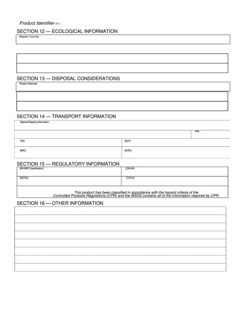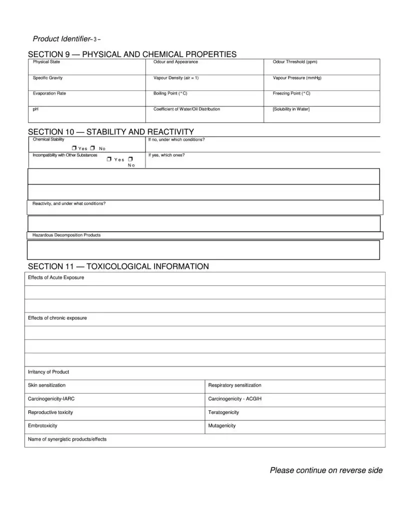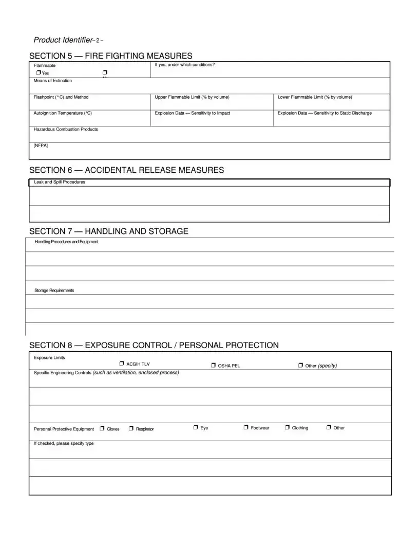 Another common oversight occurs in Section 8, where individuals may not specify the required personal protective equipment (PPE). It is important to indicate the type of gloves, respirators, and other protective gear needed. Incomplete PPE information can lead to unsafe handling practices.