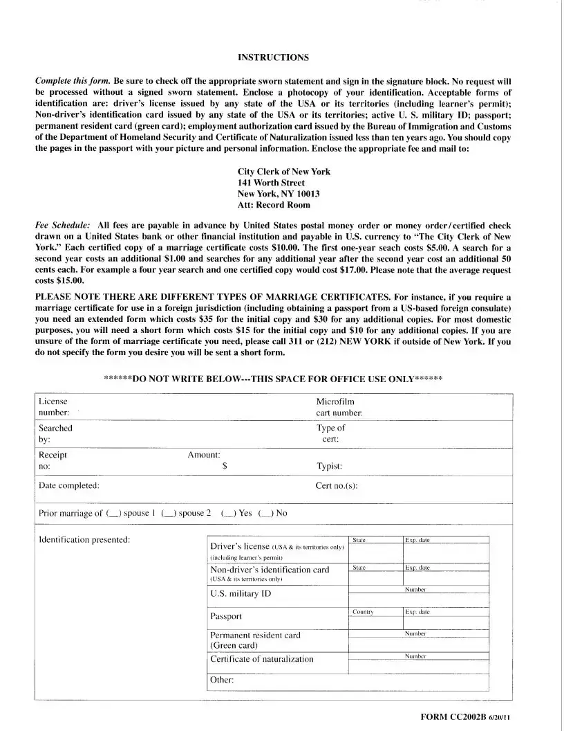 Filling out the New York CC2002B form may seem straightforward, but many people make mistakes that can delay their requests for marriage records. One common error is failing to check the correct form type. The form offers options for a short form, extended form, or other. If you don’t specify, you will automatically receive a short form, which may not meet your needs.