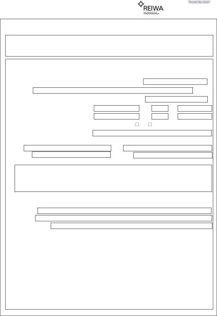 The Reiwa Tenancy Application form is an essential document for anyone looking to rent a residential property in Western Australia. This form serves multiple purposes, starting with gathering key details about the prospective tenant, such as their name, contact information, and rental preferences. It's crucial for applicants to understand that this form is not the same as the Residential Tenancy Agreement itself. Instead, it acts as a preliminary step in the rental process, allowing the property manager or lessor to assess the suitability of potential tenants. The application also informs applicants about any necessary fees, including the security bond, pet bond, and initial rent payment. Additionally, it outlines the steps that will follow once the application is submitted, whether the applicant is successful or not. For example, if the application is approved, the applicant will receive a proposed Residential Tenancy Agreement, which they must sign and return along with the required payments to finalize the rental arrangement. Understanding these aspects can help streamline the application process and set clear expectations for both tenants and lessors.