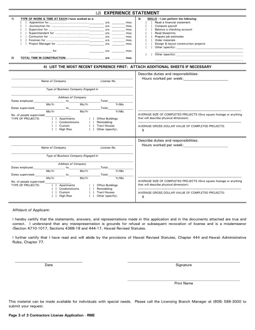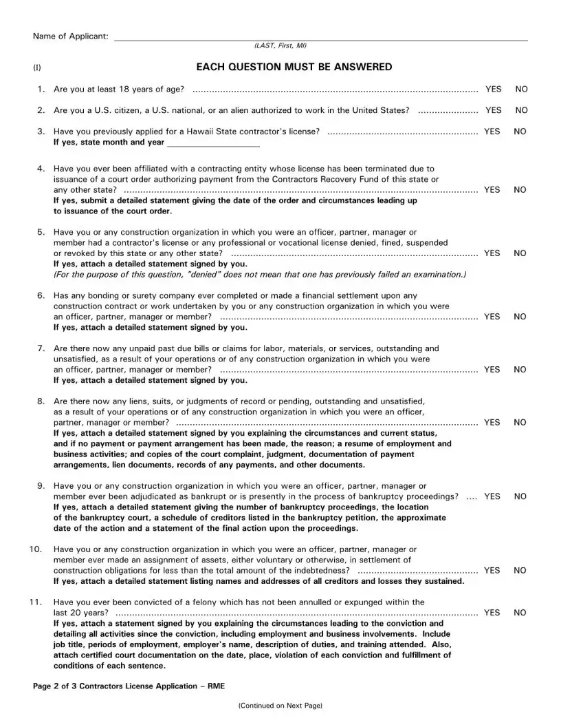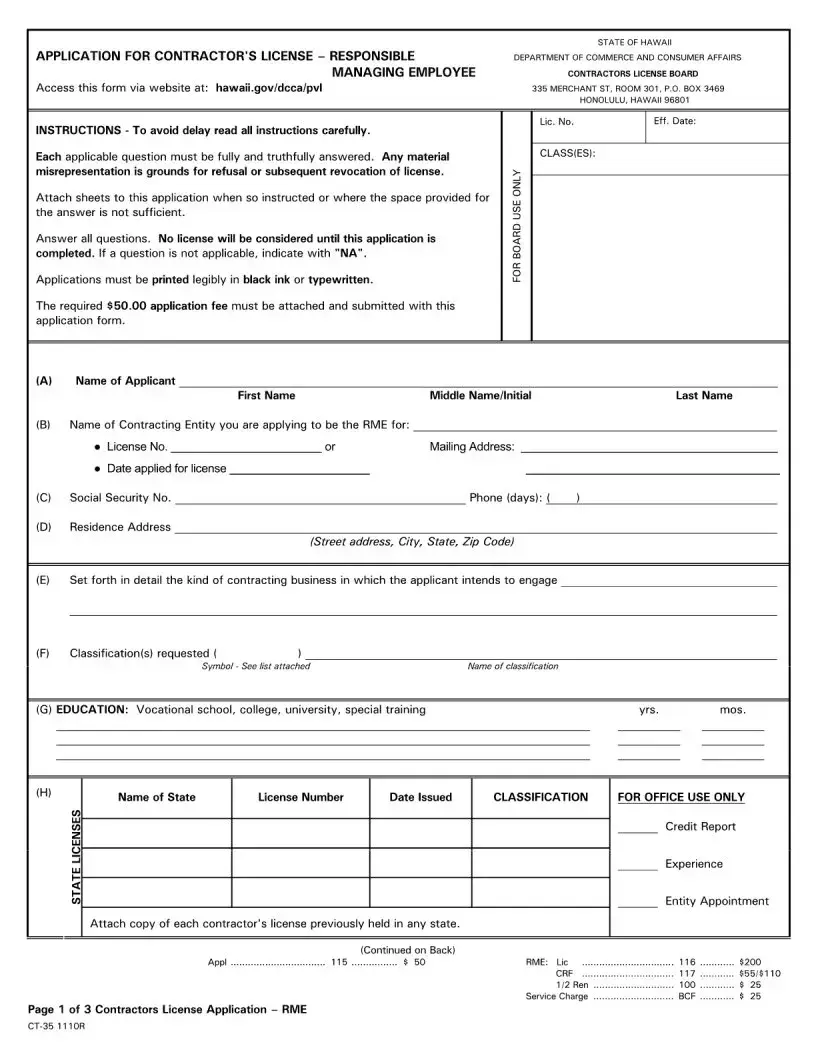 Filling out the Responsible Managing Employee (RME) form in Hawaii is a critical step for those looking to obtain a contractor's license. However, many applicants make common mistakes that can delay or even derail the process. Understanding these pitfalls can save time and ensure a smoother application experience.