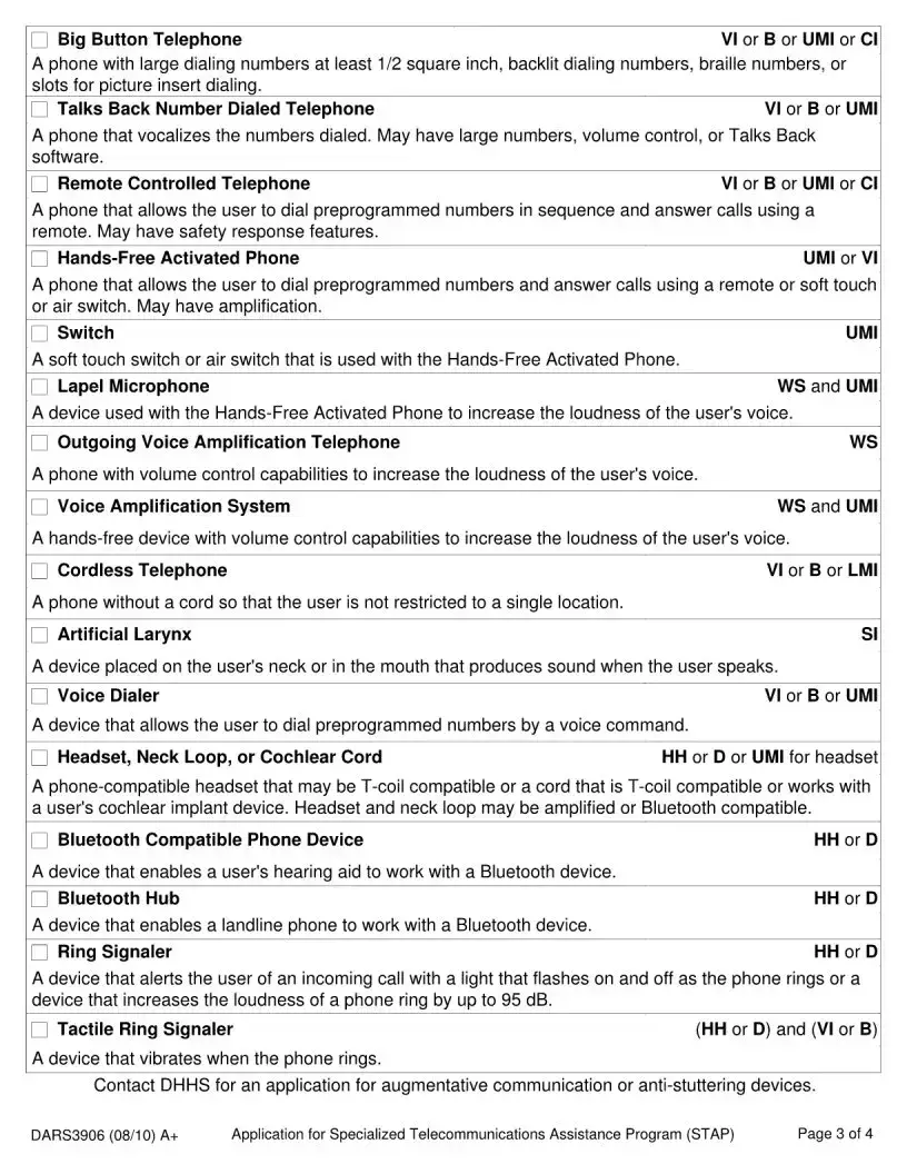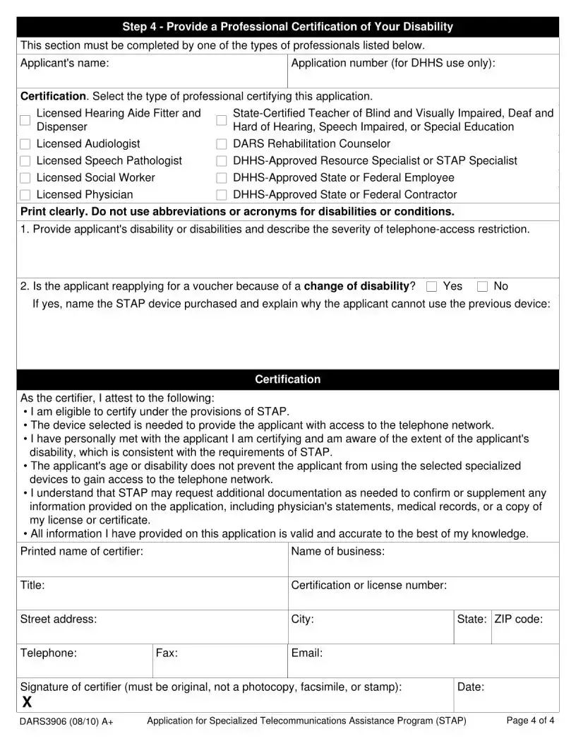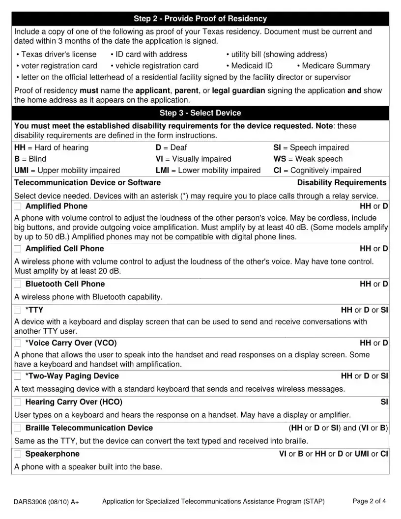 Inaccuracies in selecting the appropriate device can hinder the application process. The form lists specific devices that correspond to various disabilities. Applicants must ensure that they select a device that matches their needs and meets the established disability requirements. Misunderstanding these requirements can lead to the selection of an inappropriate device.